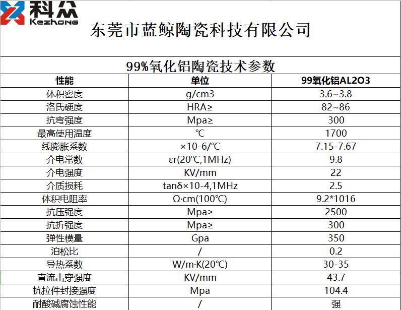 99%氧化鋁陶瓷技術(shù)參數(shù):
